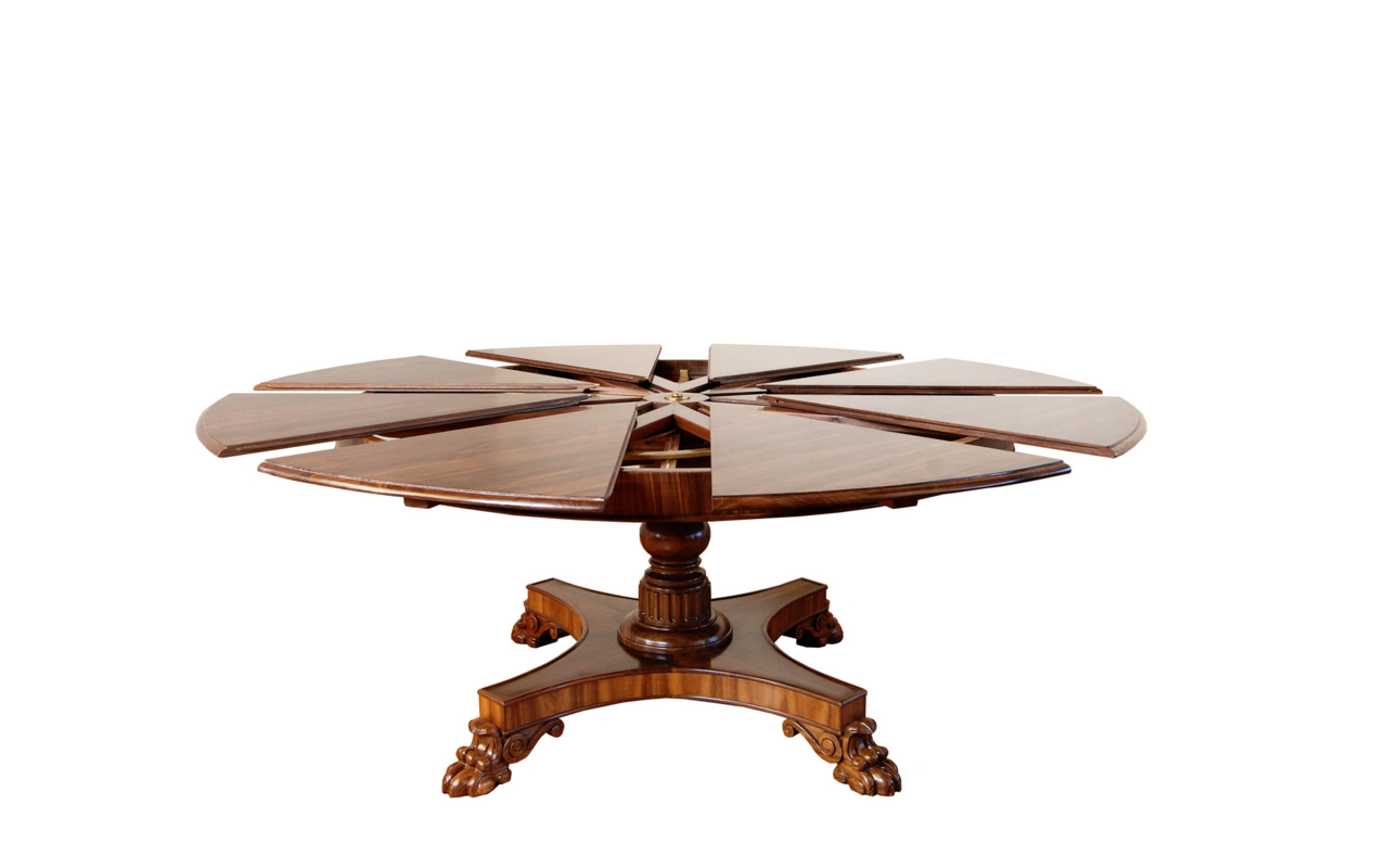 Jupe patented this table in 1835 when he invented a way to expand a circular table to a bigger size and still be able to keep it circular. This table is hard to beat for sheer ingenuity